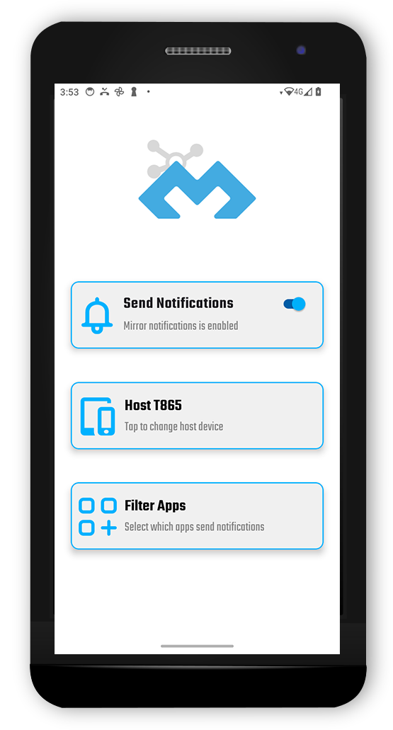 The app is very simple, enable sending notifications (and provide permissions when asked), select the host device (the device running DMD2 that will receive the notification), and lastly filter the apps from your pocket phone that you want notifications to be forwarded for.